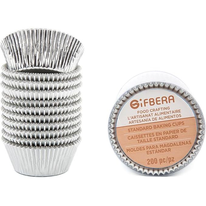 Gifbera Standard Silver Foil Cupcake Liners Metallic Paper Muffin Baking Cups 200-Count (Silver)