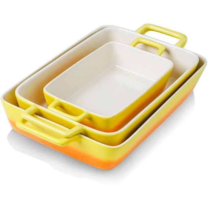 KOOV Bakeware Set, Ceramic Baking Dish, Rectangular Baking Pans Set, Casserole Dish for Cooking, Cake Dinner, Kitchen, Wrapping Upgrade, 12 x 8.5 Inches, 3-Piece (Gradient Yellow)