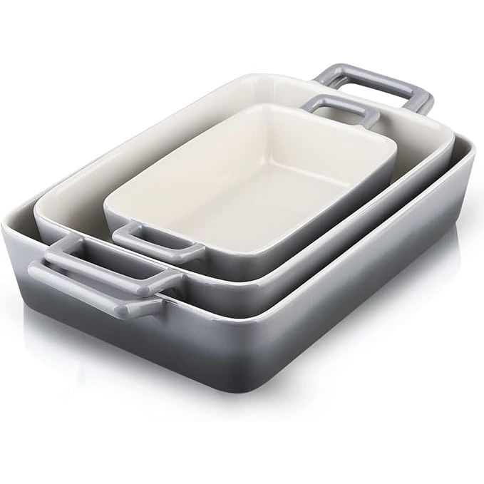 The KOOV Bakeware Set is a versatile and functional set of ceramic baking dishes that are perfect for cooking, baking, and serving a wide variety of dishes. This 3-piece set includes rectangular baking pans in a stylish gradient gray color, measuring 12 x 8.5 inches. These dishes are ideal for use in the kitchen, at banquets, for dinner parties, and for everyday cooking.